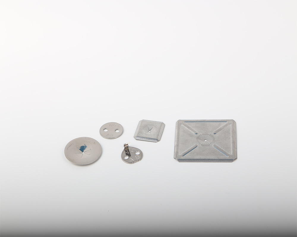 Both Round or Square self locking washers are available as a matter of design or application preference. the domed, multi-lanced hole design provides for ease of locating washers on pin and positive locking. Most styles of washers are manufacturered with a beveled edge to prevent the washer from cutting into the insulation facing.
