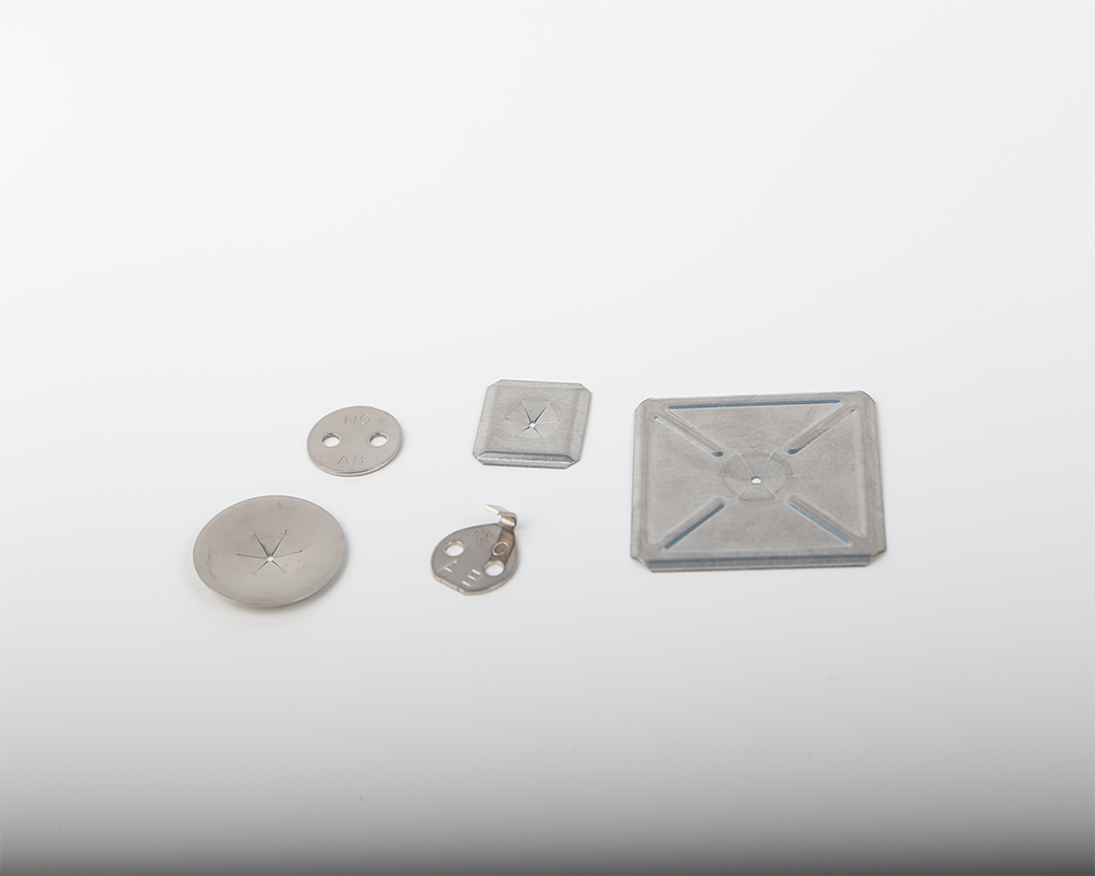 Both Round or Square self locking washers are available as a matter of design or application preference. The domed, multi-lanced hole design provides for ease of locating washers on pin and positive locking. Most styles of washers are manufactured with a beveled edge to prevent the washer from cutting into the insulation facing.